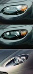 NCロードスターのデザインは、大雑把に言えば「フレンドリー且つスポーティ」を狙っていると思うので、それはそれで良いのですが、ちょっと惜しいのがライト周り。 ライトユニットのシルバーの華飾が安っぽく、メカニカルに見せようとしたのか、妙にゴチャゴチャした感じがします。 かといって、クロームメッキ仕様もくどい感じがして好きではないし・・・。 で、これをV8ヴァンテージのように、ライトユニットはブラックアウトさせて、ランプ周りだけキラリとさせてみると、どうだろう・・・? と思ってデジカメ画像を加工してみたのが、本日の写真です。(上=NCノーマル、中=NCブラックアウト加工、下=V8 Vantage。)